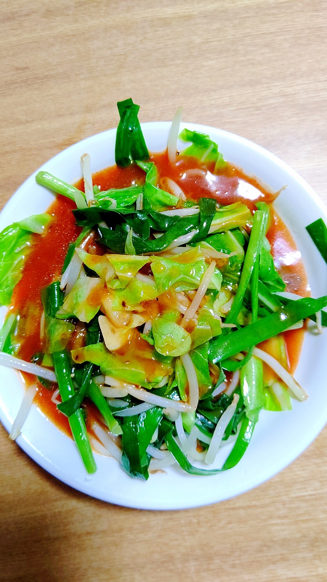 「☆野菜炒め 鶏ガラスープあんかけ☆」の作り方。 10分以内で手早く簡単に今晩の食卓に一品追加♪ 経済的にも優しく 尚且つ 美味しい♫ ぜひ一度お試し下さい(o^^o)♪ 材料豚ひき肉、もやし、キャペツ(ざく切り) 菜物とパプリカを食べ易く切って加え、鶏がらスープの素を混ぜる。 2 菜物の葉がしんなりしたら、火を止めて◆を混ぜたものを全体にかけて混ぜる。 3 ★片栗粉はダマになり易いので、余熱状態で加えます。4 野菜に火がとおったら 器に☆印 片栗粉 水を入れまぜてから入れ さらに炒める 10秒
